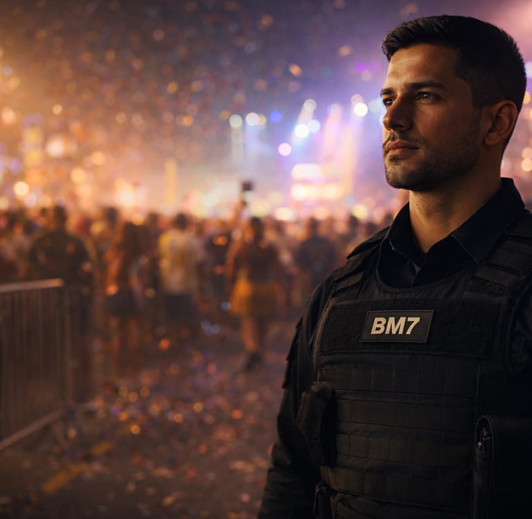 A BM7 defende que o vigilante de verdade é aquele que se prepara para cada tipo de missão. Eventos sociais exigem leitura de comportamento, inteligência emocional, postura firme e conhecimento técnico específico.